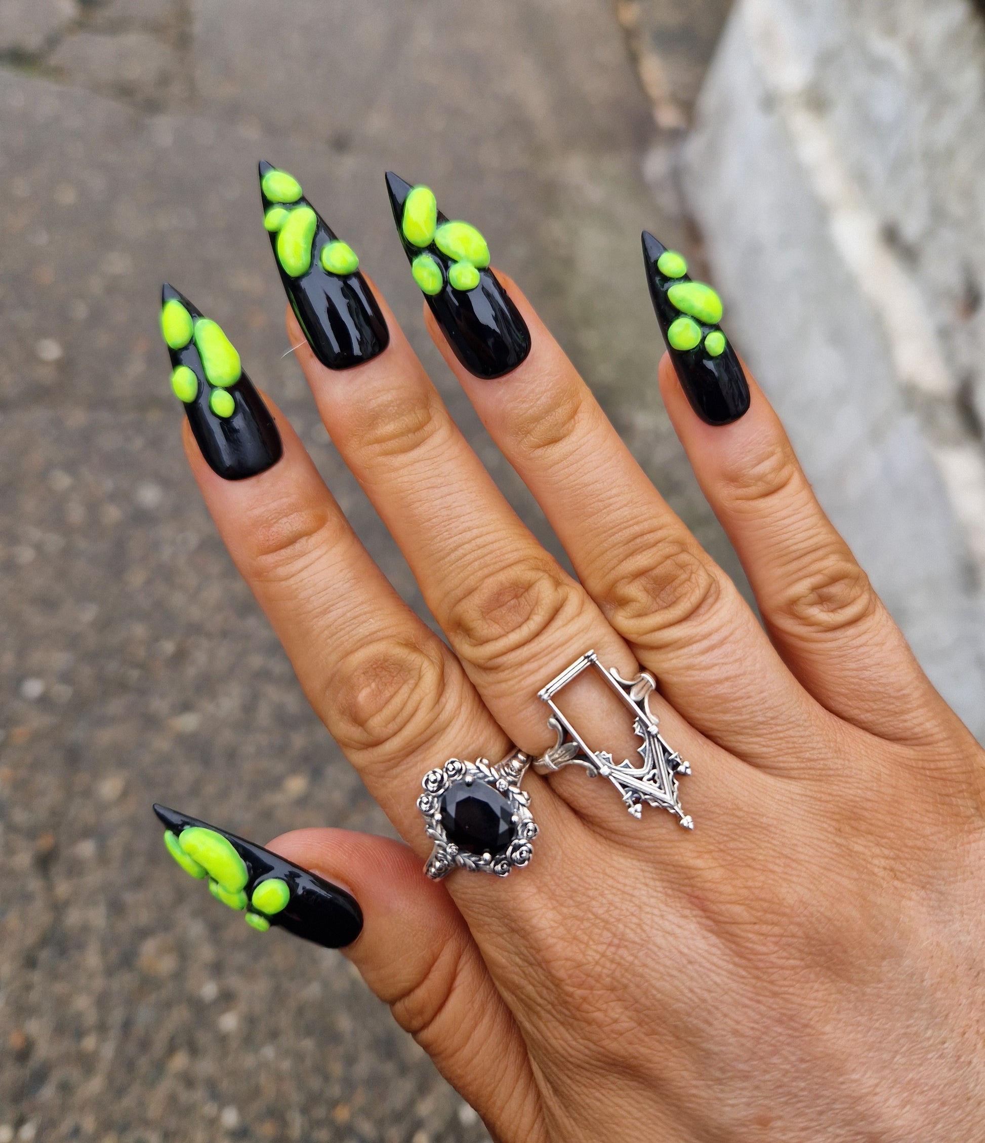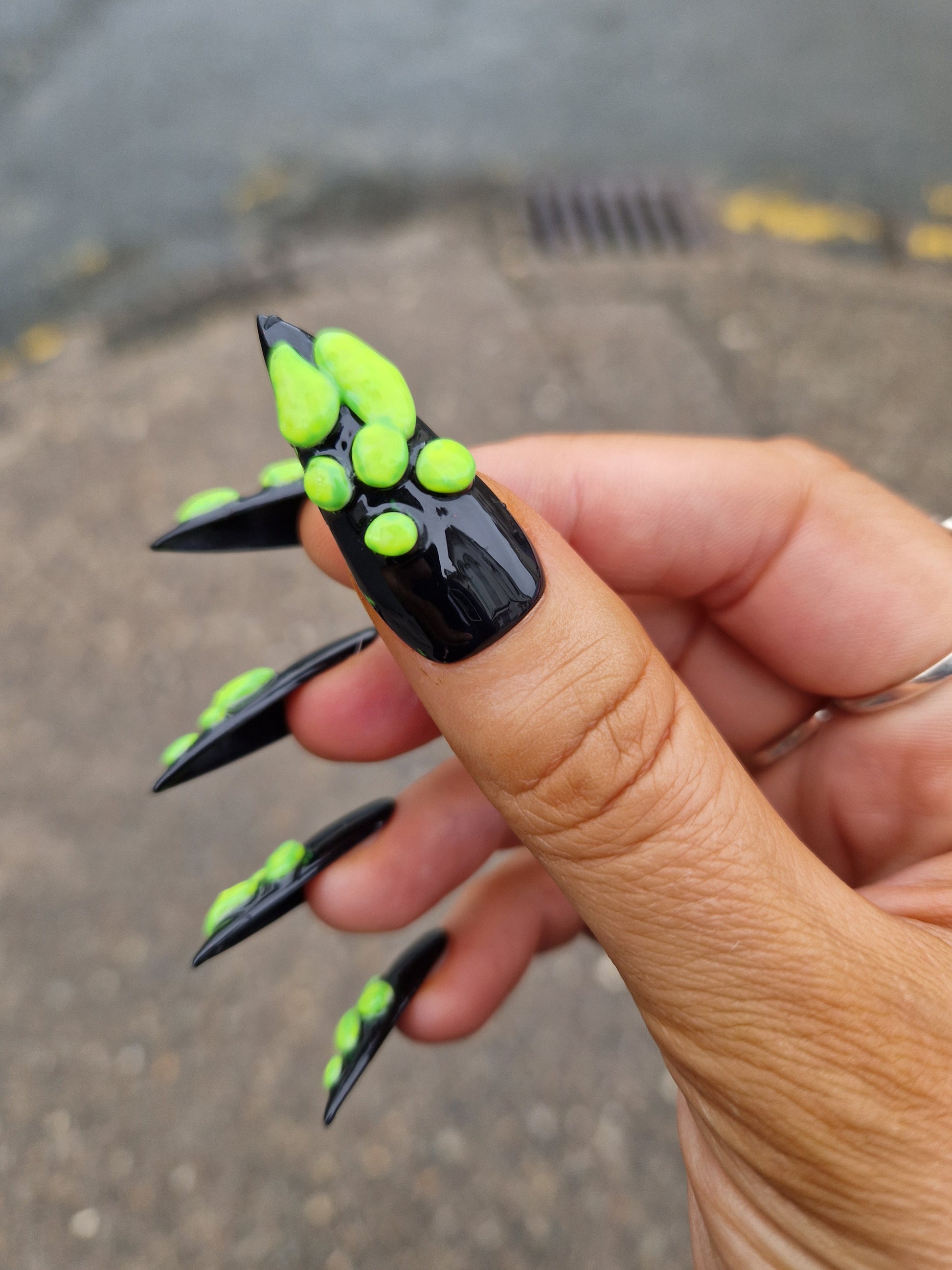 Python Nails BOILED consists of a black base with 3d rolled clay drops to look as though your nails have boils on them.