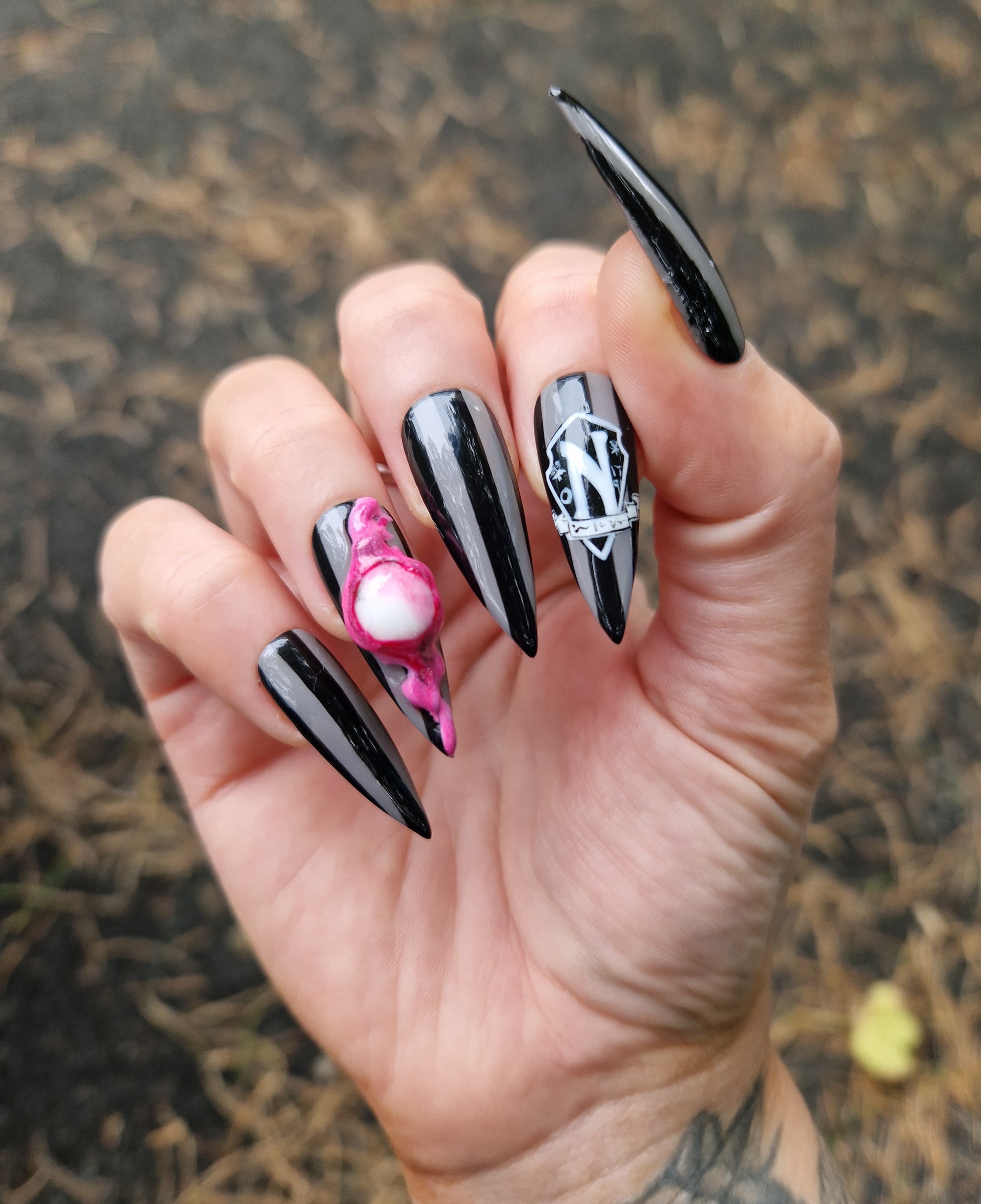 Python Nails ONE EYED RAVEN because Wednesdays child is full of woe.. featuring the nevermore crest and a 3d raven eye.