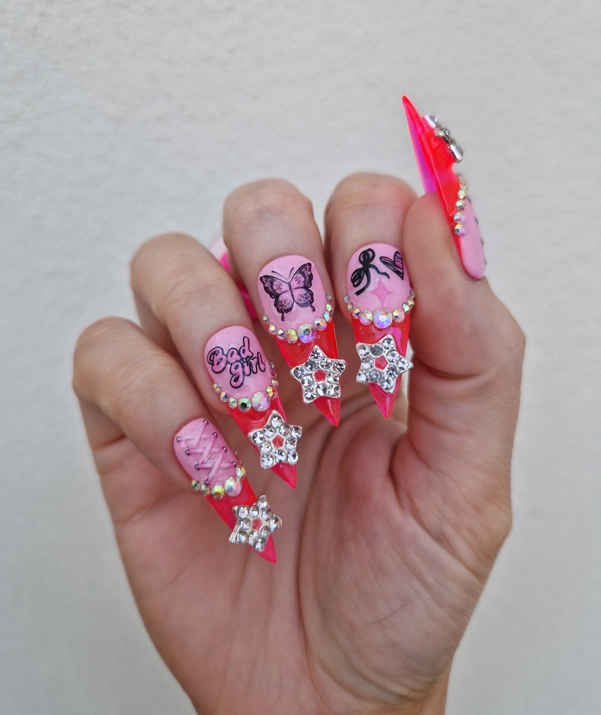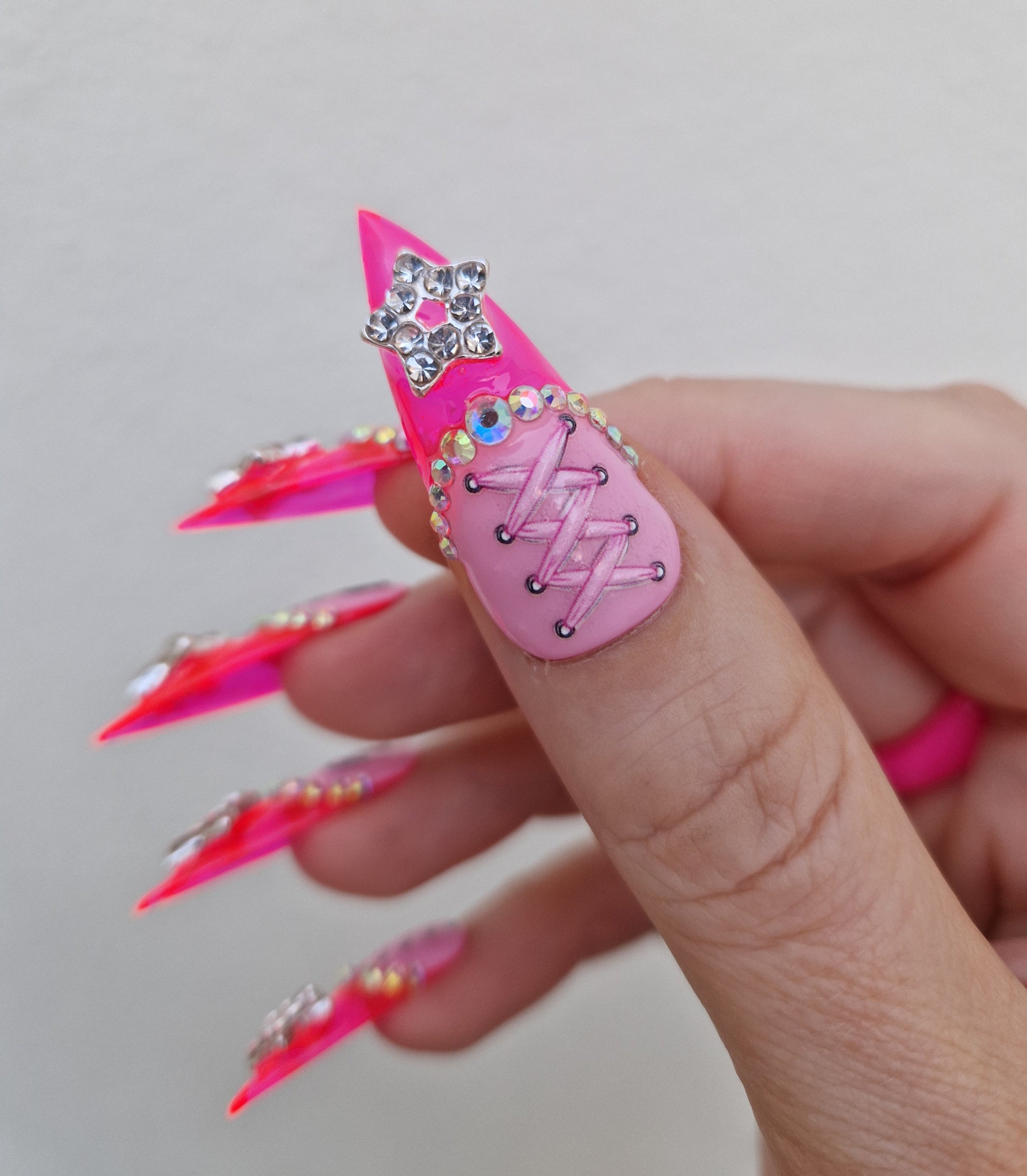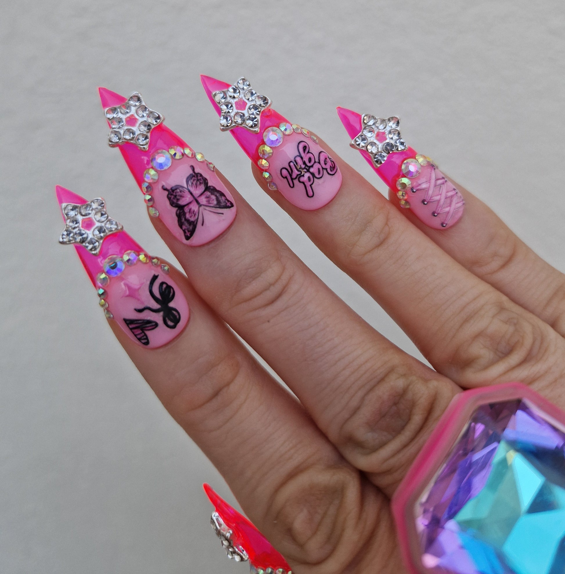 Python Nails SO YESTERDAY is a neon pink jelly tip with star charm inspired by the y2k sunglasses of my era.
