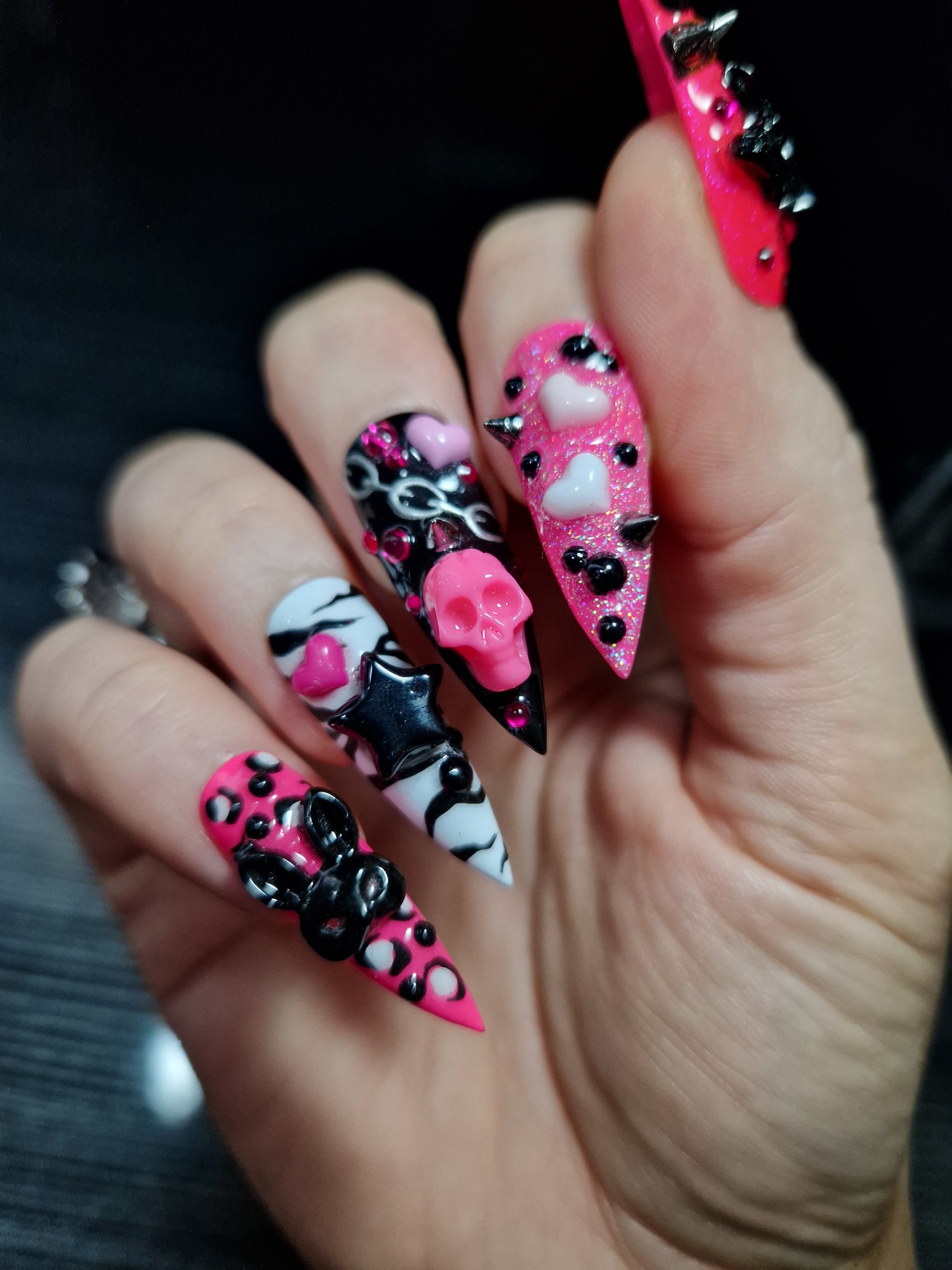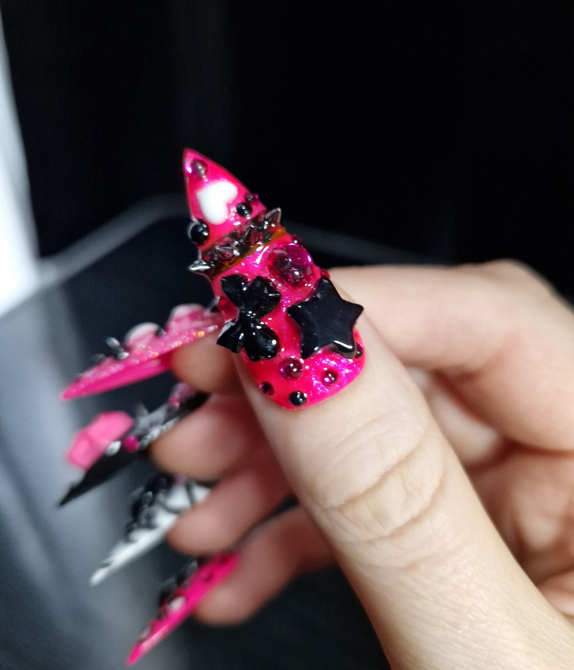 Python Nails THIS AINT A SCENE is every scene queens dream giving girly goth vibes with a mix of pink and black.