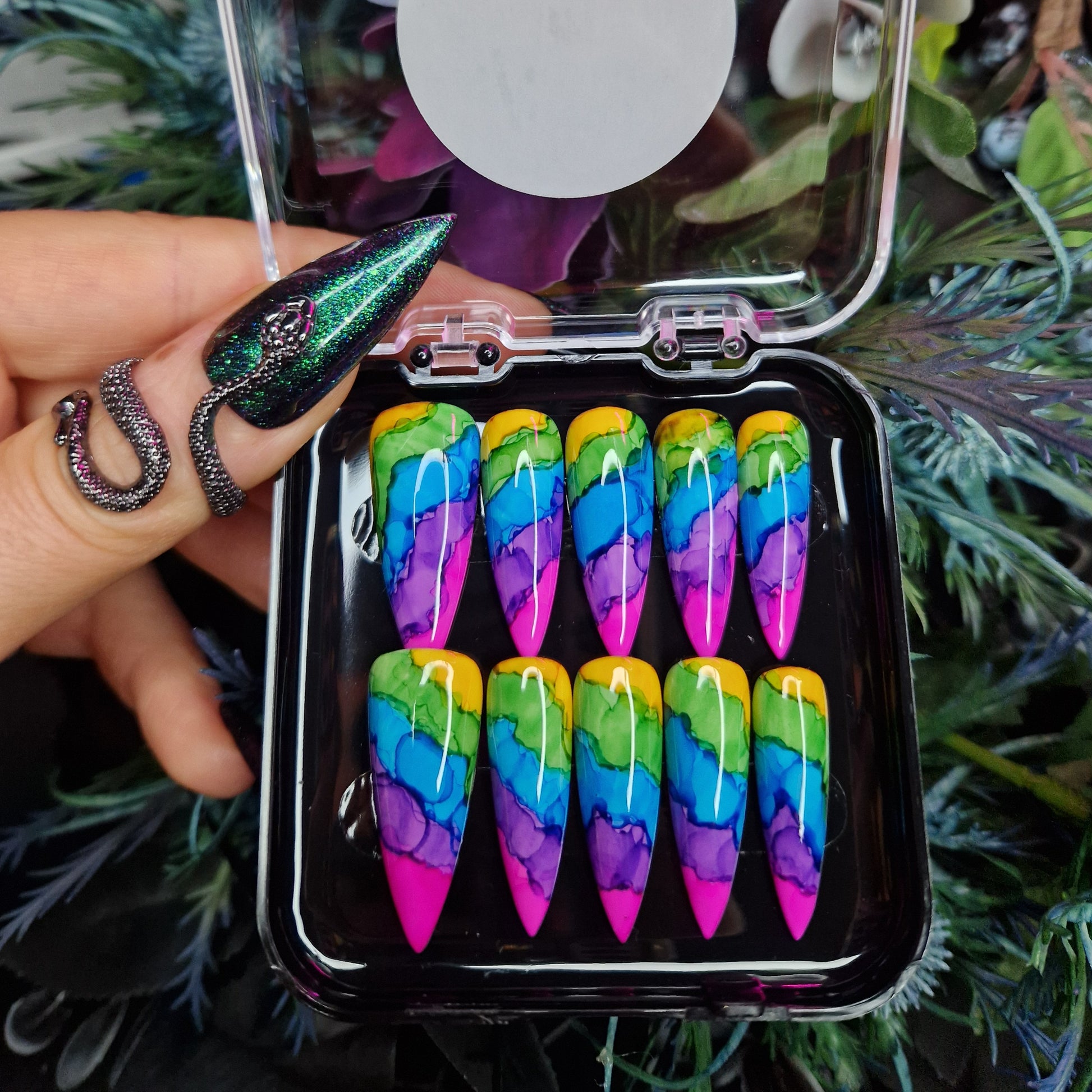 Python Nails TIE DYE are created using marble inks.